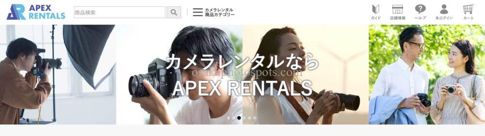 APEX RENTALS | プロ向けの撮影機材が豊富 | 短期:1泊2日~(店舗)、2泊3日~(配送) | ミラーレス、一眼レフ、レンズ、コンデジ、ビデオカメラ、アクションカム、アクセサリー類、撮影機器など | 基本補償あり + 有料OP | 条件付きで無料 返送料ユーザー負担 | 自宅、宿泊施設、店舗 | 宅配便、コンビニ配送、店舗 | あり(東京・大阪・愛知) | チャット、問い合わせフォーム | 公式サイトを見る |