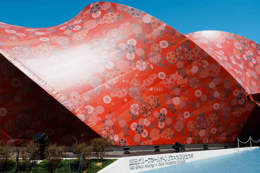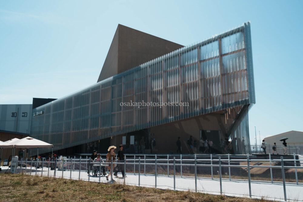ネパールパビリオンを見学したあと、再びオランダパビリオンへ向かいます。道中で見かけた「飯田グループホールディングス×大阪公立大学パビリオン」の外観を発見。パシャっと撮りつつ、ふらふら移動。