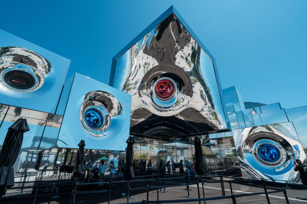 null²はメディアアーティスト・筑波大学准教授・ピクシーダストテクノロジーズ代表取締役・猫ブリーダーなど、肩書が多すぎる落合陽一さんがプロデュースしたシグネチャーパビリオン。外観は万博パビリオンの中でもかなり異質です。