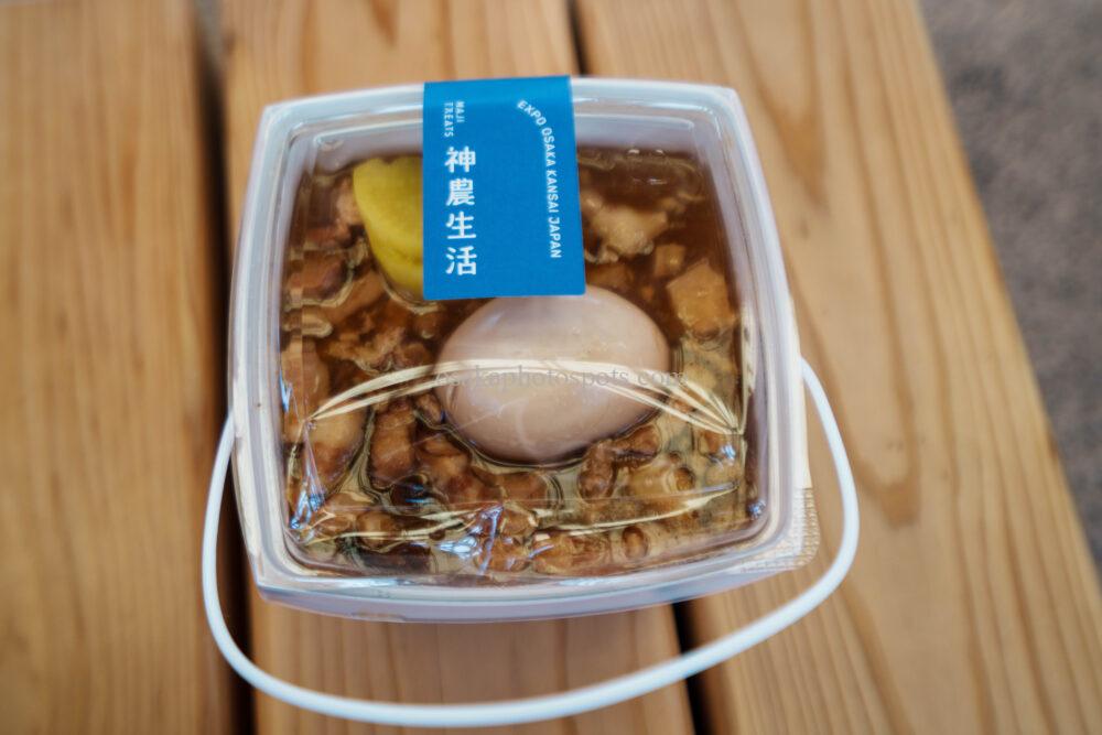 TECH WORLDは民間パビリオンで、展示のほか、お土産や台湾名物の飲食物を販売しています。お土産と飲食のレジが共通なため列が長く、10〜20分ほど並んで魯肉飯(ルーローハン)とミルクティーを購入しました。