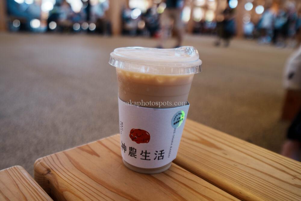 館内では飲食できないため、大屋根リングのベンチへ移動。魯肉飯もミルクティーも美味しくいただきました。ミルクティーは甘さ控えめで、食事と一緒でも飲みやすかったです。