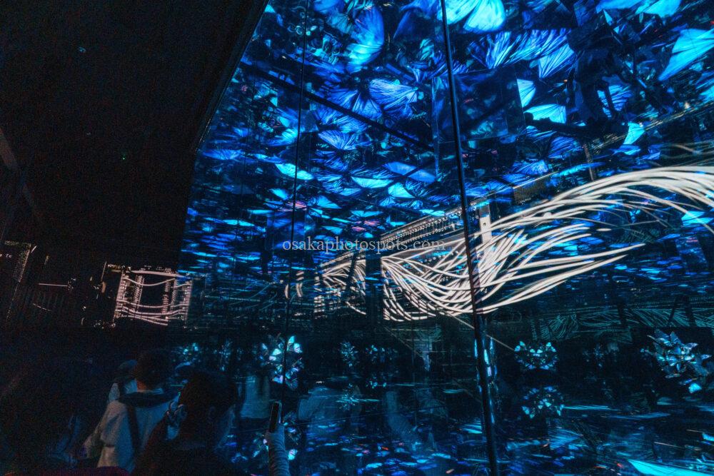 この日はモルフォ蝶の映像。広さはそれほどなく、見学時間は1分ほどだと思います。あまり時間がかからないので、もう1周するのもありかもです。