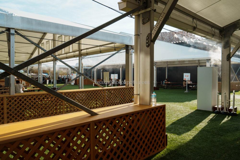 エアコンなどはありませんが、ミストが出ていて、弱めながら風も吹き抜けるため、思いのほか快適。中には爆睡してる人もいましたよ(笑)。
