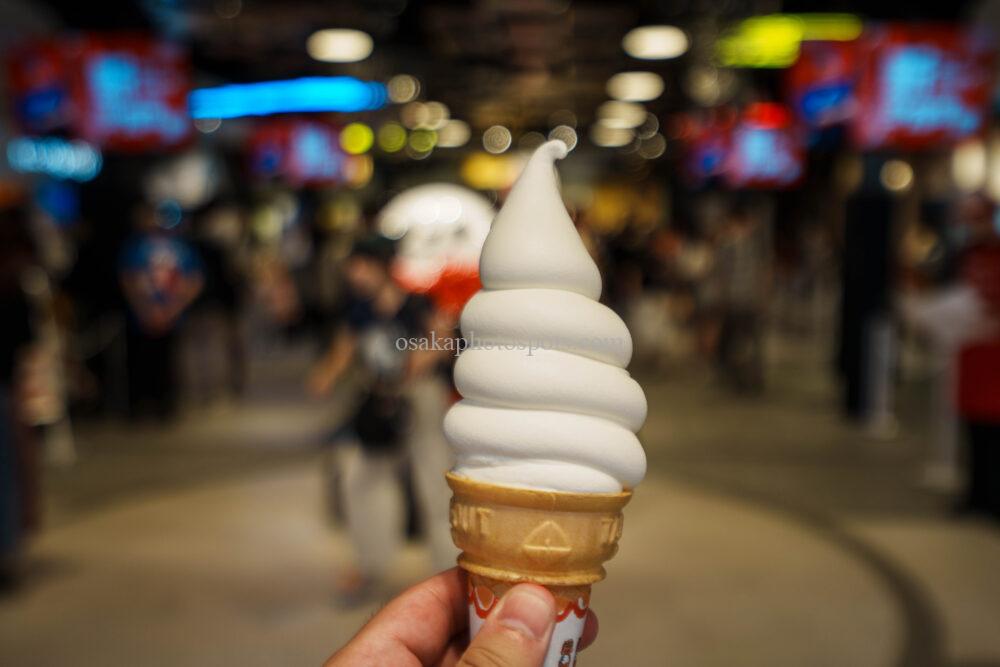 パビリオン内では飲食不可のため、急いで外に出て実食。ただ、この日は暑く、ソフトクリームがどんどん溶けてくるので必死で早食い(笑)。