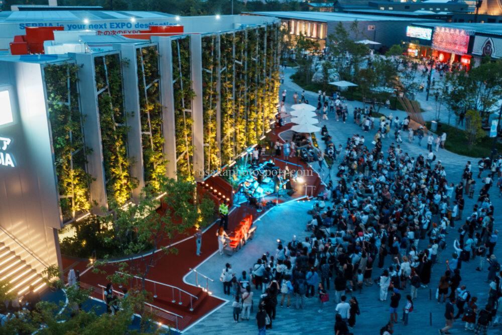 日が落ちてから再び歩いていると、セルビアパビリオン前で生演奏に遭遇。