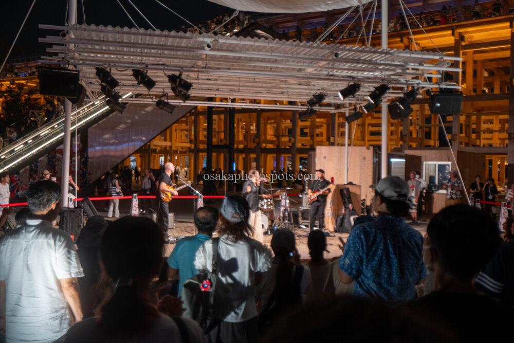 ミニ花火終了後、大屋根リングの下に降り、バスの予約時間までブラブラしようかなと思っていると、カナダのバンドのミニライブに遭遇。