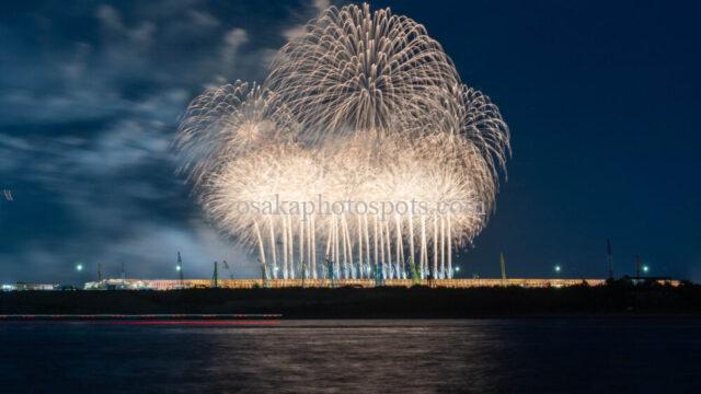 打ち上げ日は公開されていますが、時間は安全上の理由から非公開。夢洲南側護岸から約5分間の打ち上げられます。