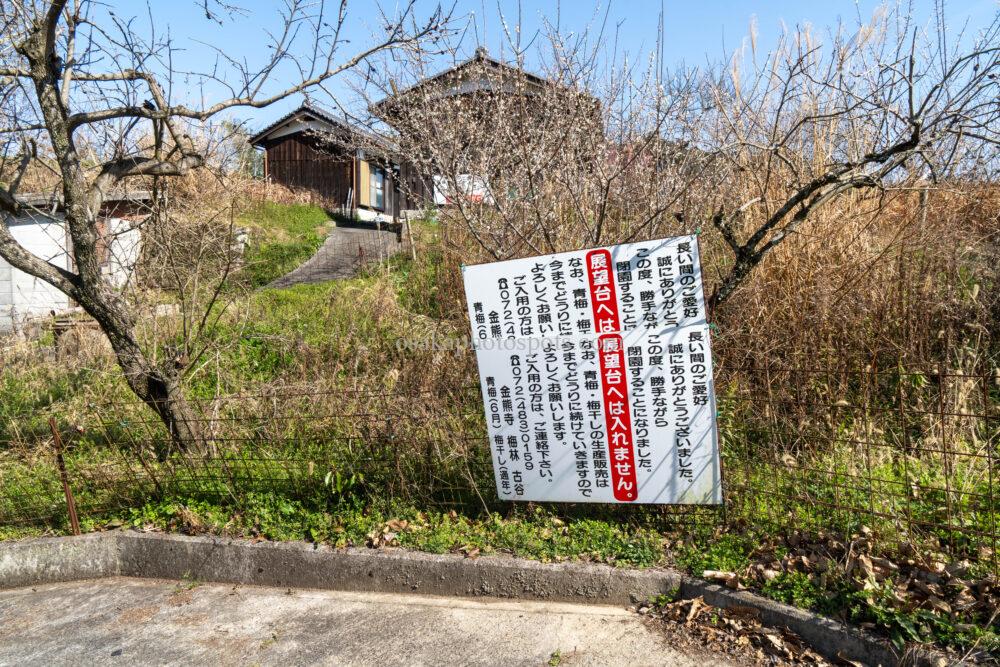 梅の開花時期に営業していた丘の上の茶屋は、2021年に閉鎖されており、入ることができません。あわせて、茶屋敷地内の展望台へも入れなくなっているので、ご注意ください。