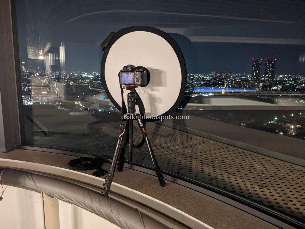 特に夜景撮影の際には、室内の電灯が点灯して映り込みがかなり目立つので、暗幕や忍者レフなどの対策が必要です。