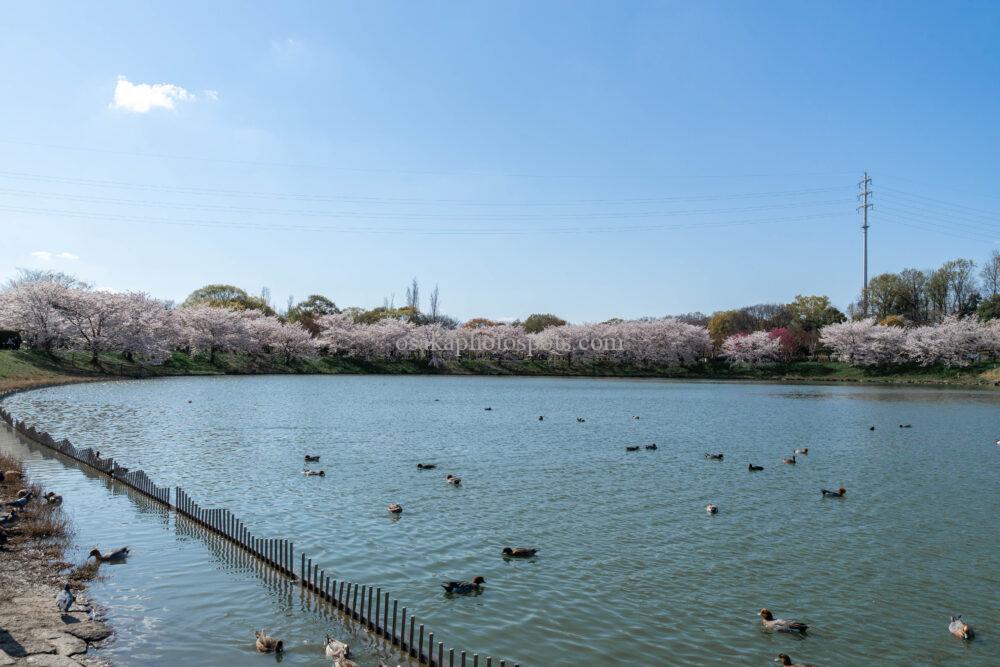 特に、大池の西側・北東側や緑地橋口など、多くの本数がまとまって植わっています。花見客も多くいるので、撮影の際にはご注意ください。